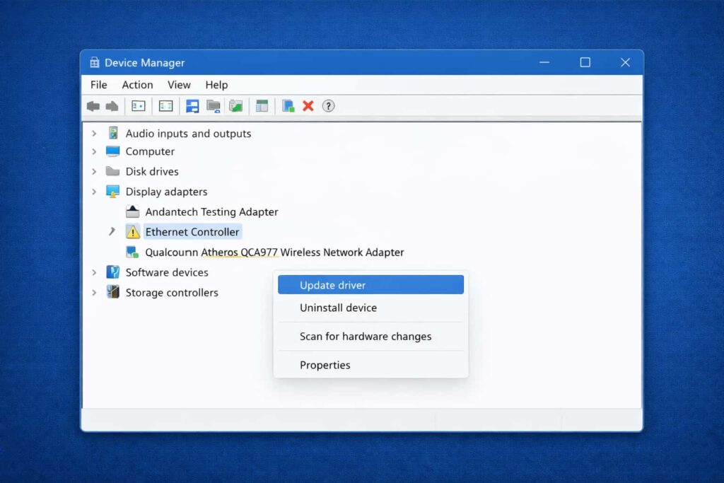 - Right-click on any device with a yellow exclamation point and choose “Update driver.”
