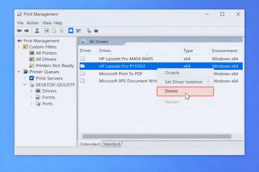 The best fix is to restart the Print Spooler, delete stale driver files, and manually add the printer using a Local Port. If you updated Windows recently, also look for newer drivers from your printer manufacturer.