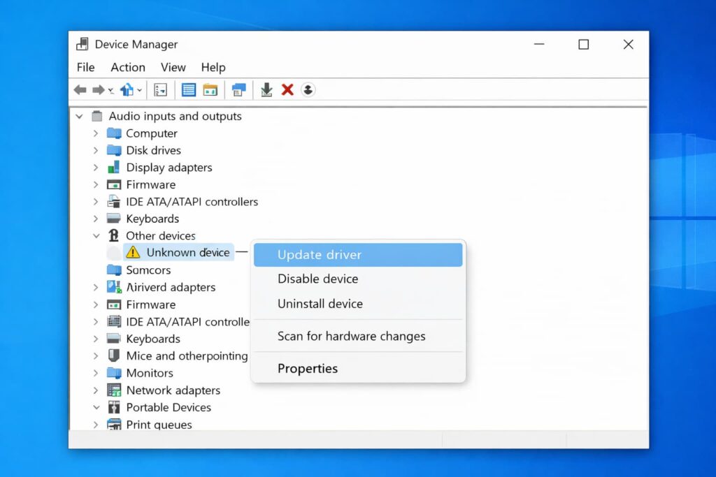 Right-click on the device, and then click Update driver.